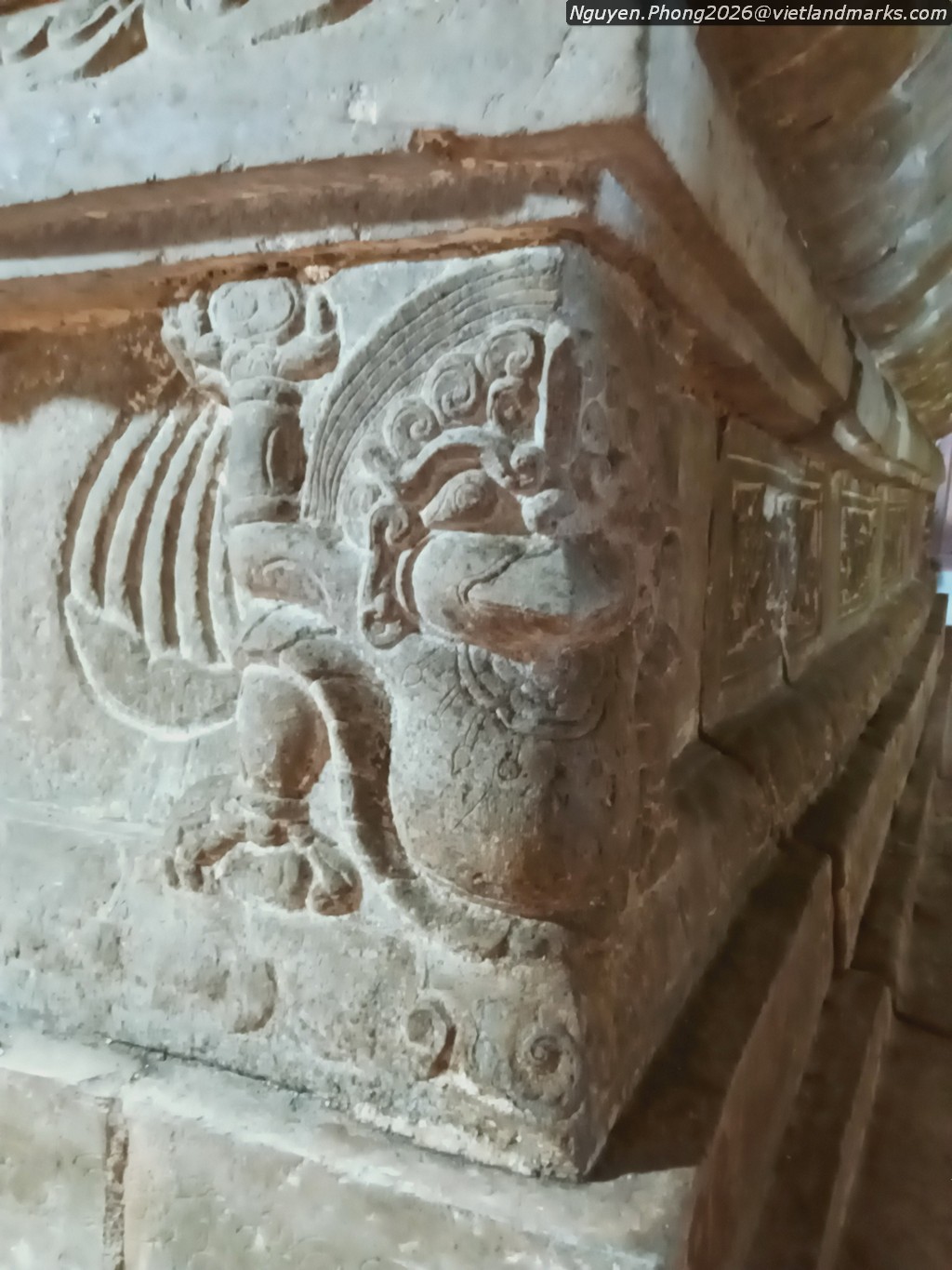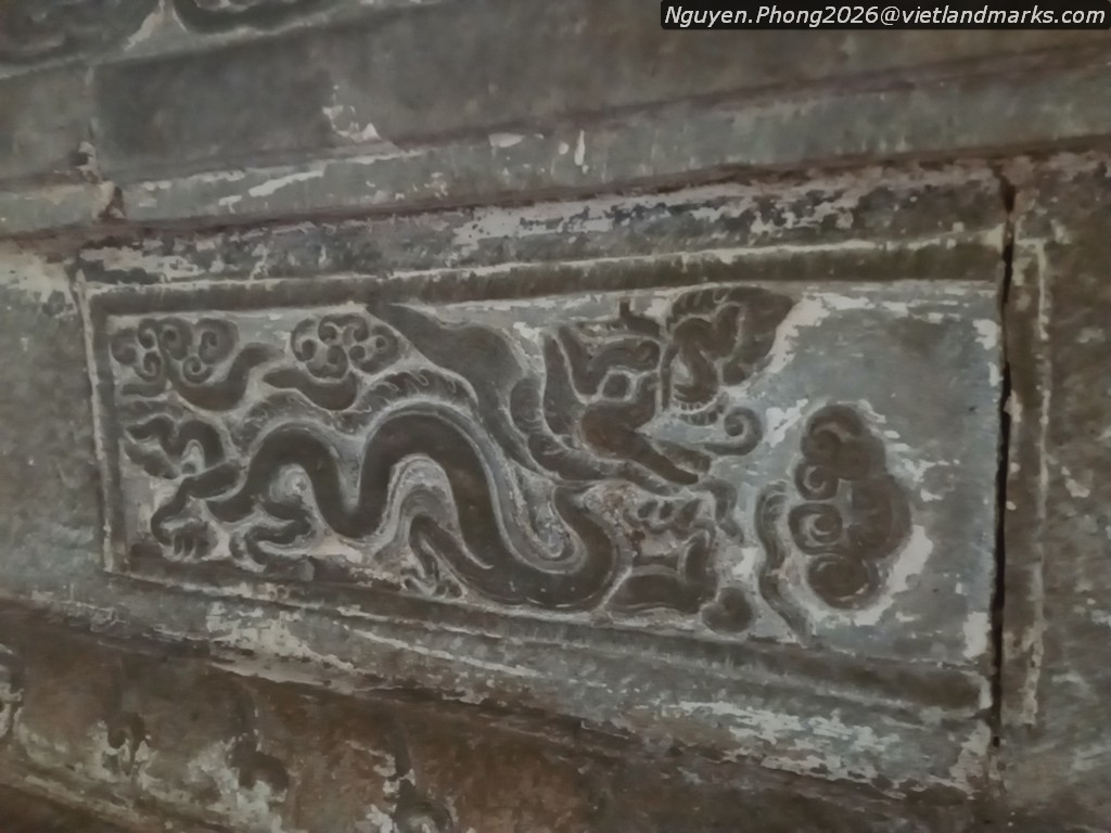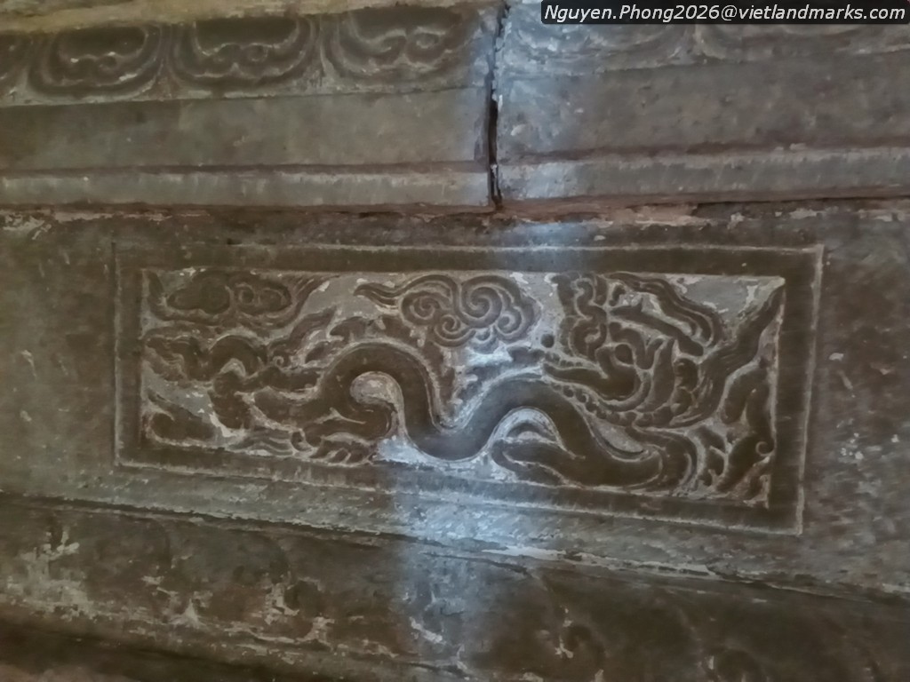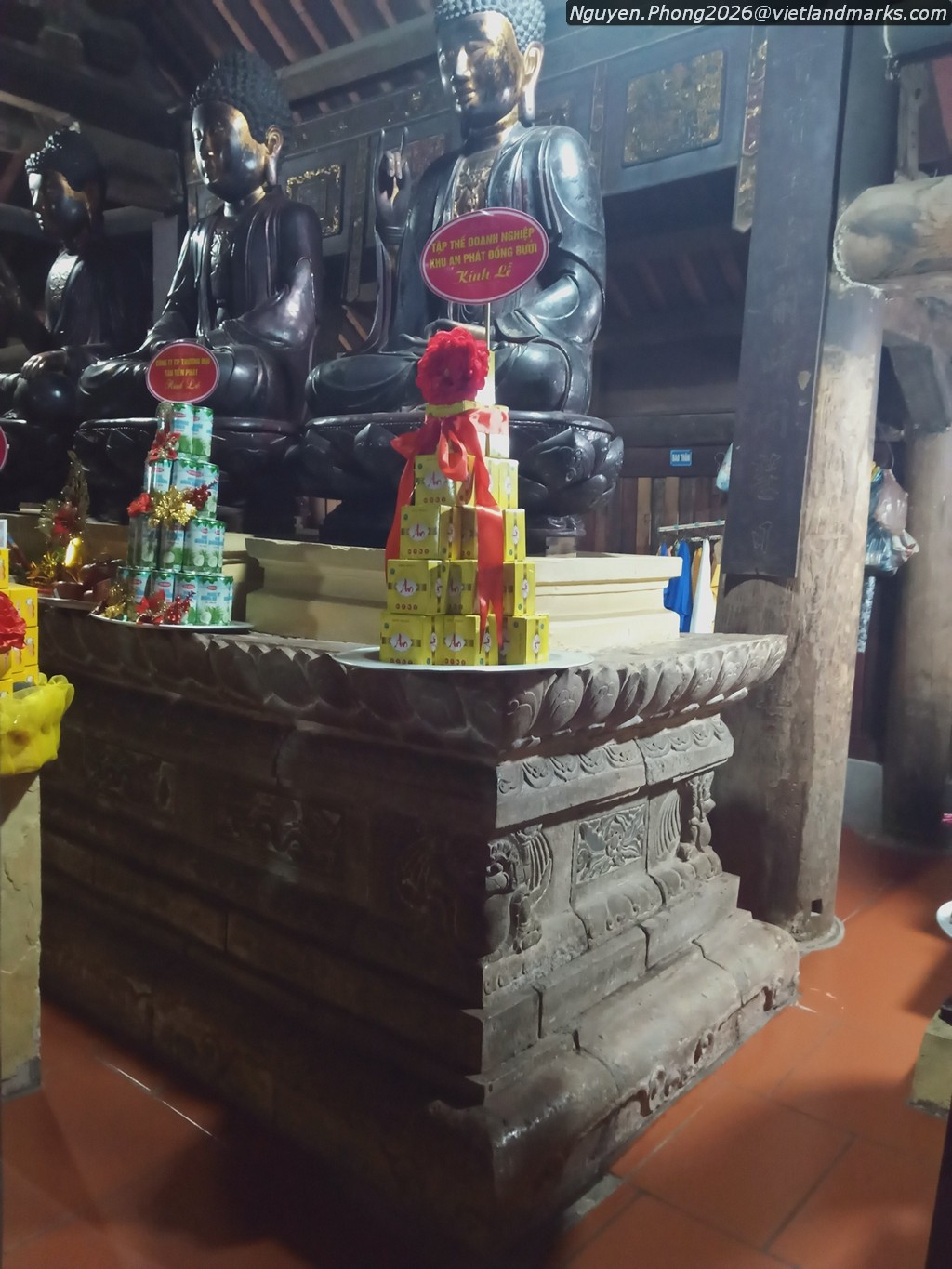 Đặc biệt ở chùa Hương Trai có chiếc bệ đá hoa sen khối hộp thuộc loại di vật đặc trưng của nghệ thuật cuối thời Trần. Bệ có kích thước rất lớn: cao 160cm, mặt rộng 132cm và dài 366cm, hiện đặt ba pho Tam Thế còn rộng, phần trên là tòa sen cánh mập mạp trang trí một cánh sen cuộn với đầu hoa mặt nhẫn ở giữa, phần thân có chim thần (garuda) ở góc, mặt trước chạm 4 ô rồng uốn lượn. Bệ đá còn có nhiều hoa văn đặc thù của thời Trần, công năng là bàn Phật, ghi việc cúng ruộng tiền cho chùa năm Đại Trị 3 (1370) và niên đại tạo dựng bệ đá vào năm Đại Định 2 (1370).