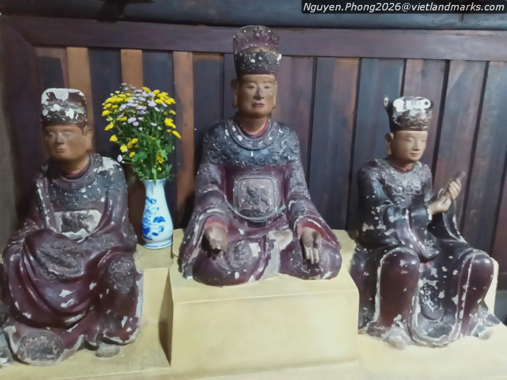 Chùa Hương Trai đã quý hiếm về kiến trúc, còn tăng thêm giá trị ở hệ thống tượng và đồ thờ: trong Thượng điện ở gian giữa trên bệ đá là bộ Tam Thế, tiếp xuống A Di Đà, rồi Di Lặc với Bồ tát Văn Thù cưỡi sư tử ở bên phải và Bồ tát Phổ Hiền cưỡi Bạch tượng ở bên trái. Các gian bên trong phía bên trái có Quan Âm Thiên Thủ, bên trái có Quan Âm Thị Kính, còn hai góc bên ngoài có Thổ Địa và Giám Trai. Ở tòa Thiêu hương là tượng Ngọc Hoàng ở giữa, hai bên có hai tiên nữ đứng hàng trong và hai tiên nữ ngồi hàng ngoài, phía ngoài còn có bộ tượng Nam Tào và Bắc Đẩu. Tòa Tiền đường ngoài Hộ Pháp, Đức Ông và Thánh Hiền, còn có thêm hai bộ tượng Quan Âm tọa sơn mà dân gọi là bà Tây Năng dạy dân trồng dâu nuôi tằm. Số tượng ấy khá đông đúc, được làm theo công thức với xu thế tự nhiên thuộc phong cách thời Nguyễn. Trái lại, phần lớn tượng ở Thượng điện lại sớm hơn nhiều: bộ tượng Tam Thế dáng bụ, đường nét to rõ, ngực đeo anh lạc, giữa các pho tượng phần nào tự do trong tư thế tay và trang phục, các tòa sen đều có cánh mập với những trang trí nổi cao… gần gũi với nghệ thuật thời Mạc. Pho Văn Thù và Phổ Hiền phần nào đã thanh hơn, đường nét trau chuốt, hoa văn ở ngực vừa phải có thể thuộc thế kỷ XVII. Các pho A Di Đà và Di Lặc đều ngồi trên bệ sen trơn, ít chú ý đến họa tiết mà tập chung vào khối hình căng chắc, có thể gắn với thế kỷ XVIII.