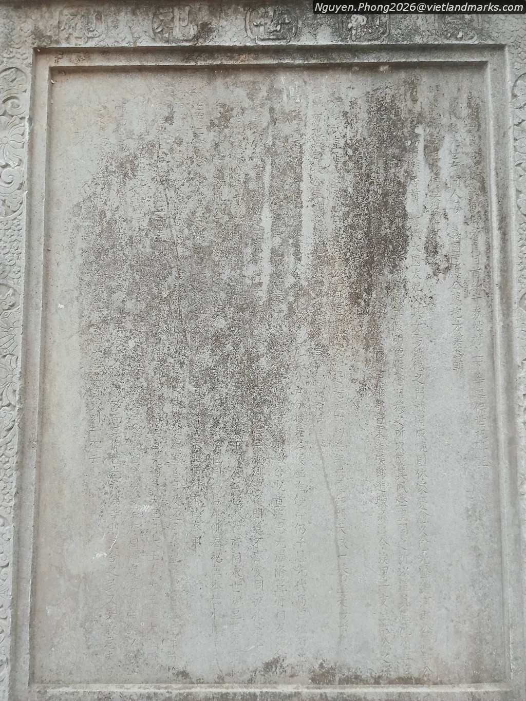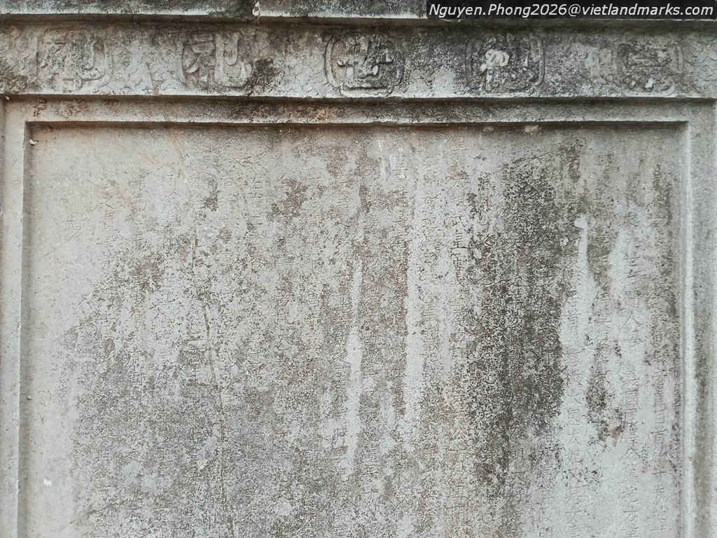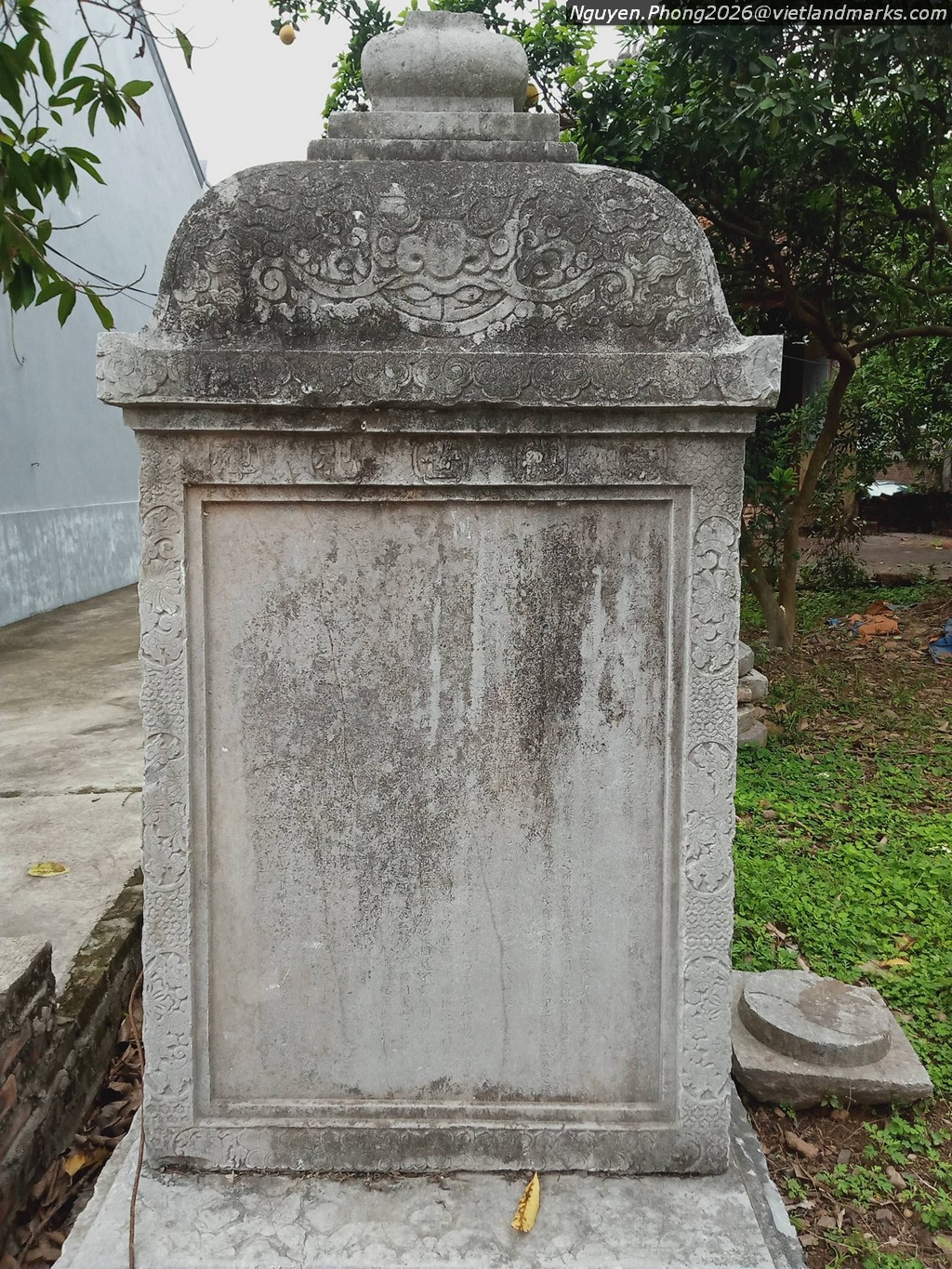 Đặc biệt hơn nữa là tấm bia lớn nhất, nói về việc năm chi họ Đặng Lương Xá, rước tổ tiên 5 đời của Đại đô đốc Đông Lĩnh hầu Đặng Tiến Đông thống lĩnh đội Thiên hùng binh vào thờ hậu tại chùa, đồng thời ca ngợi công trạng của Đô đốc với triều Tây Sơn, góp phần đánh đuổi quân Mãn Thanh xâm lược, tô tượng, tạc bia ghi nhớ công lao muôn đời. Bia do hai đại danh sĩ đương thời là Phan Huy Ích và Ngô Thì Nhậm soạn khắc năm Cảnh Thịnh tứ 5 (1797) với tên "Tông Đức Thế Tự Bi"