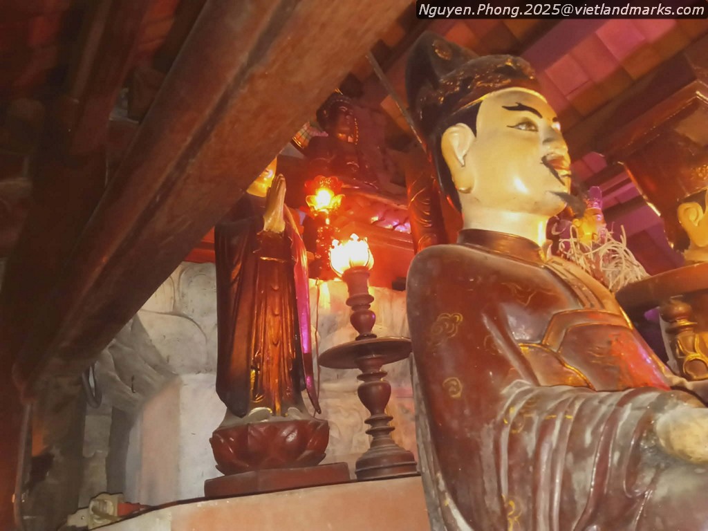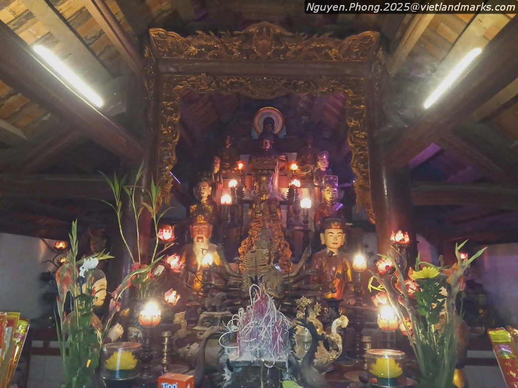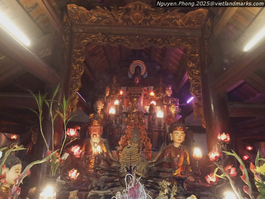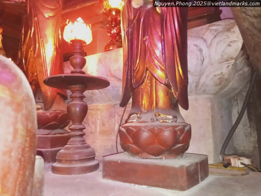 Chùa có 1 bệ tháp hoa sen thời Trân, nhưng chỉ tiếp cận được 1 góc nhỏ. Trang trí gỗ đã bị sơn lại toàn bộ.