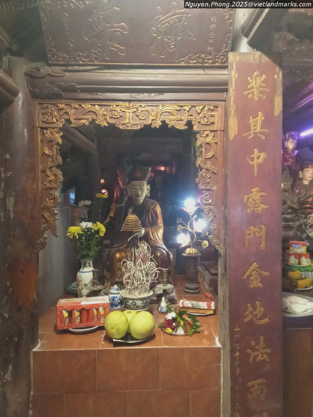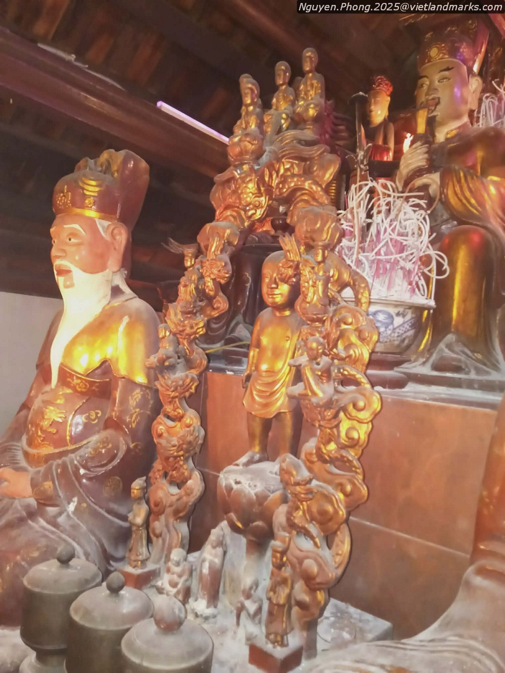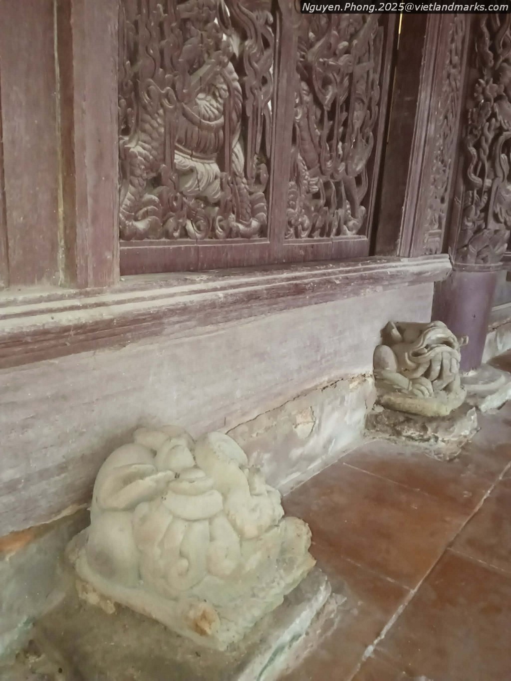 Chùa có 1 bệ tháp hoa sen thời Trân, nhưng chỉ tiếp cận được 1 góc nhỏ. Trang trí gỗ đã bị sơn lại toàn bộ.