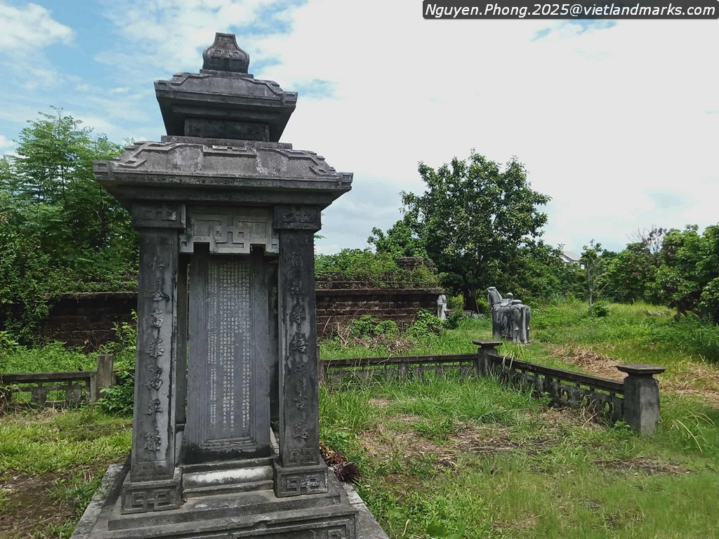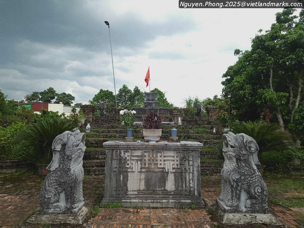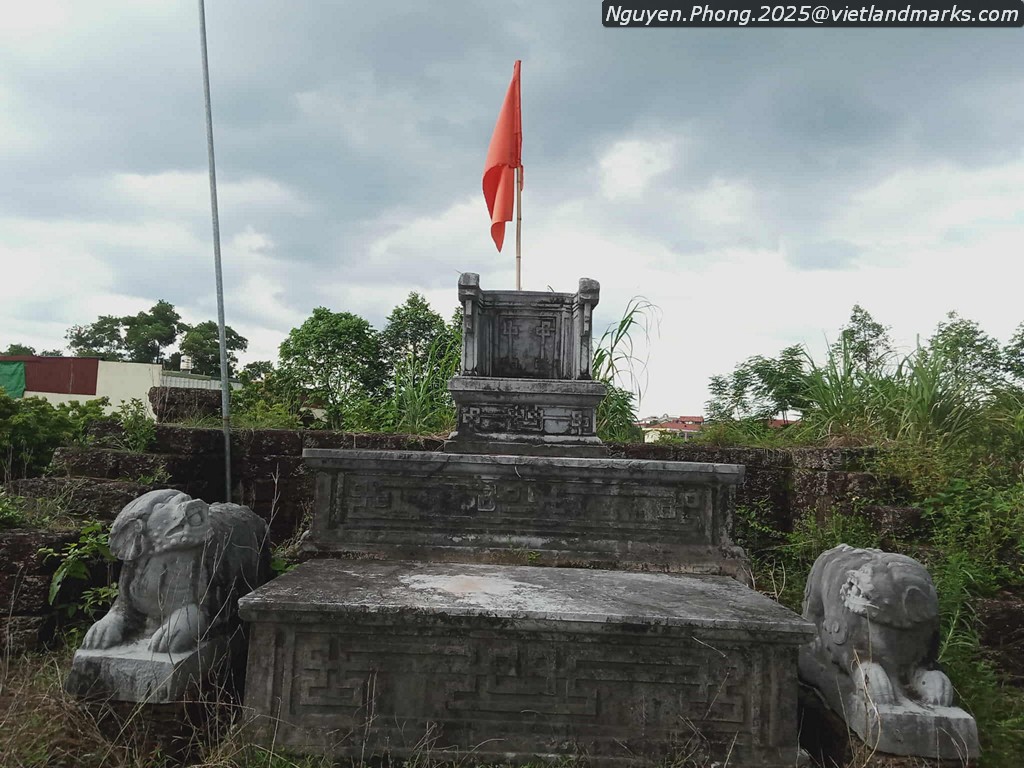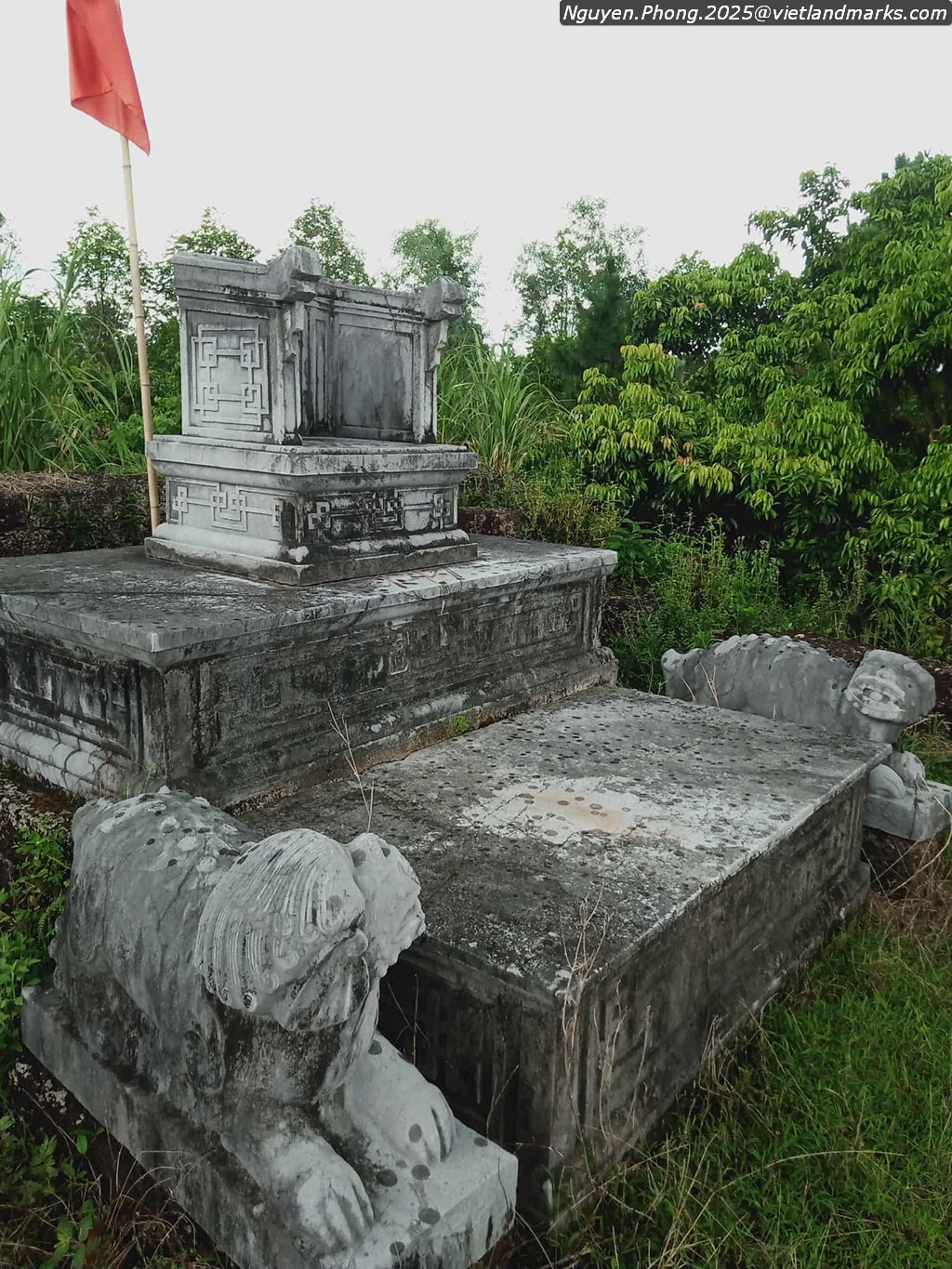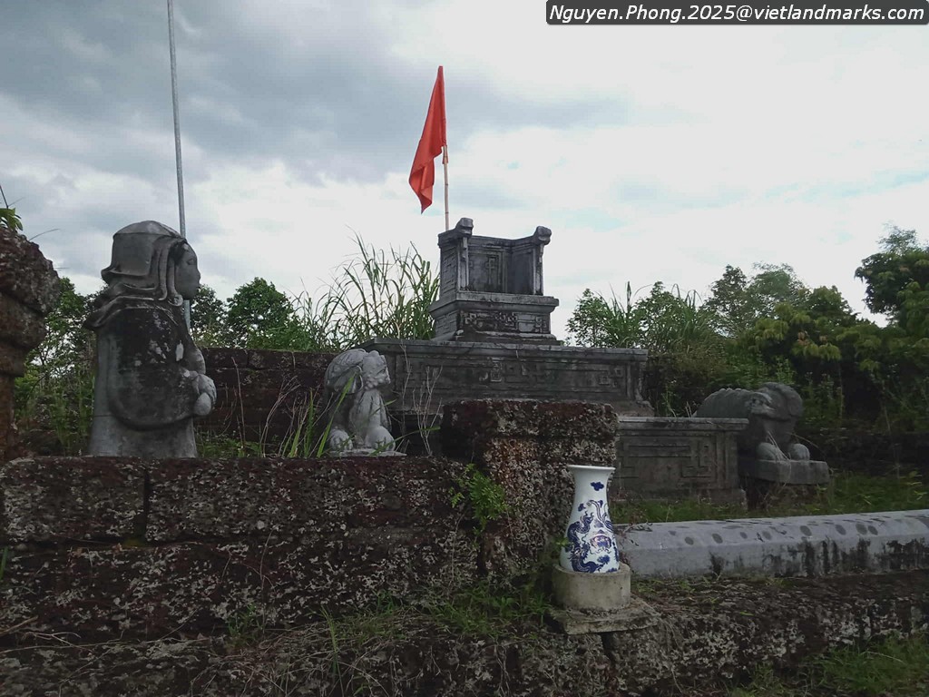 Quý hầu được rước về an táng tại sinh phần do ông xây dựng từ năm Vĩnh Khánh thứ 1(1729), bên trái có sinh từ, bên phải là nhà bia. Quy mô lăng mộ rất lớn, bao hết một quả đồi, tường xây bằng đá ong quây kín, phía trước có hồ rộng, phong thủy rất đẹp. Trung tâm là tẩm mộ cũng được xây vuông bằng tường đá ong, trổ 3 cửa nhỏ, chỉ có thể chui vào, phía trước là đôi tượng ngựa đá và hai vị quan văn võ, điêu khắc tỉ mỉ công phu, sống động như thật. Khu sinh phần ở bên trái tẩm mộ, cũng được xây thành một đàn thờ bằng đá ong rất cao, bên trên đặt ngai bằng đá, có tượng người hầu và linh thú chầu hai bên. Dưới sân lại có án hương cũng bằng đá, trên án hương khắc tiếp công trạng của quý Hầu vào triều vua Cảnh Hưng, sau khi dựng sinh từ này. Bên phải có nhà bia cũng làm hoàn toàn bằng đá, nét chữ vẫn còn sắc nét, hoa văn điêu khắc thanh nhã, bên trong có tấm bia sự ký về việc dựng sinh từ vào năm 1729.