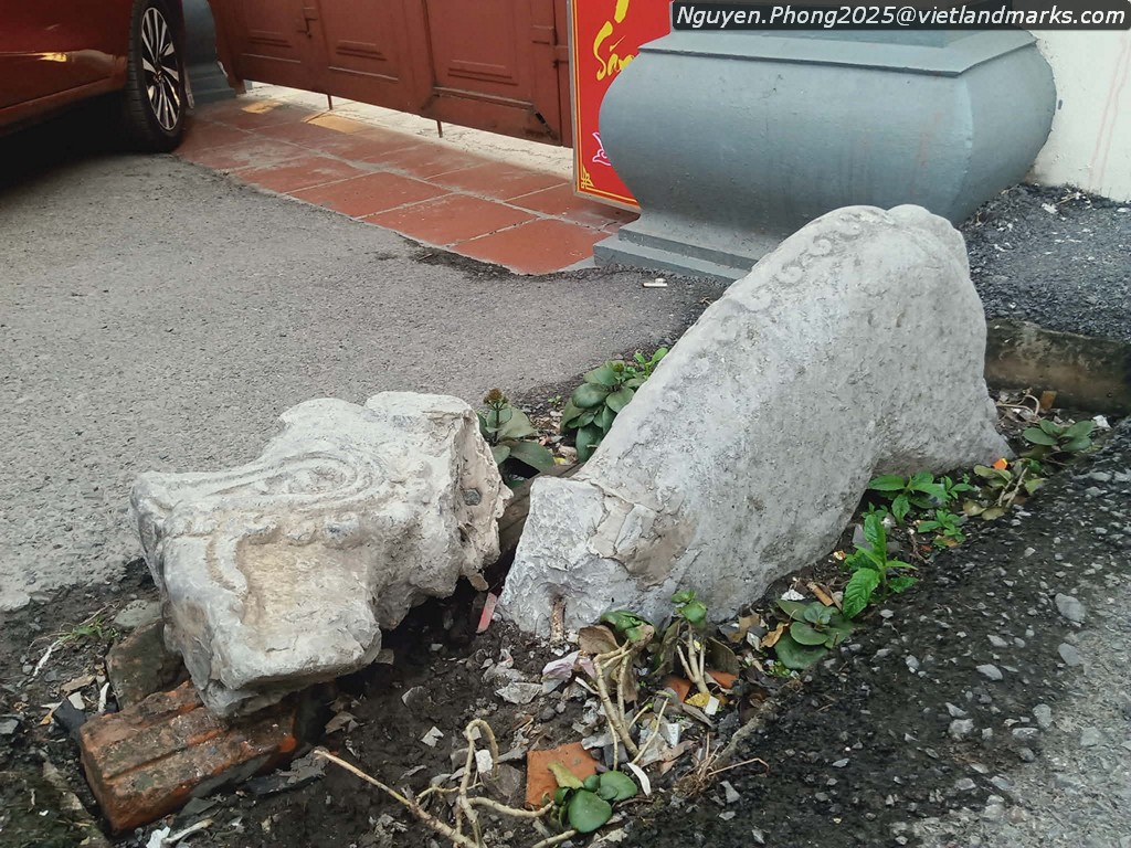 Gần đây, một nhóm người có máu mặt tại làng Cao Xá lấy lý do đây là Đạo quán nên đã đuổi sư trụ trì ra khỏi di tích. Và từ đó Giáo hội Phật giáo Việt Nam không còn quản lý chùa Linh Tiên - di tích cấp quốc gia nữa mà dần được tư nhân hoá. Quán mới được trùng tu nhưng đôi sư tử đá ngoài công không có phương án bảo tồn hợp lý nên đã bị hư hỏng nặng, phần đầu cả hai tượng đều bị vỡ, thân tượng chìm trong bê tông nhựa đường.