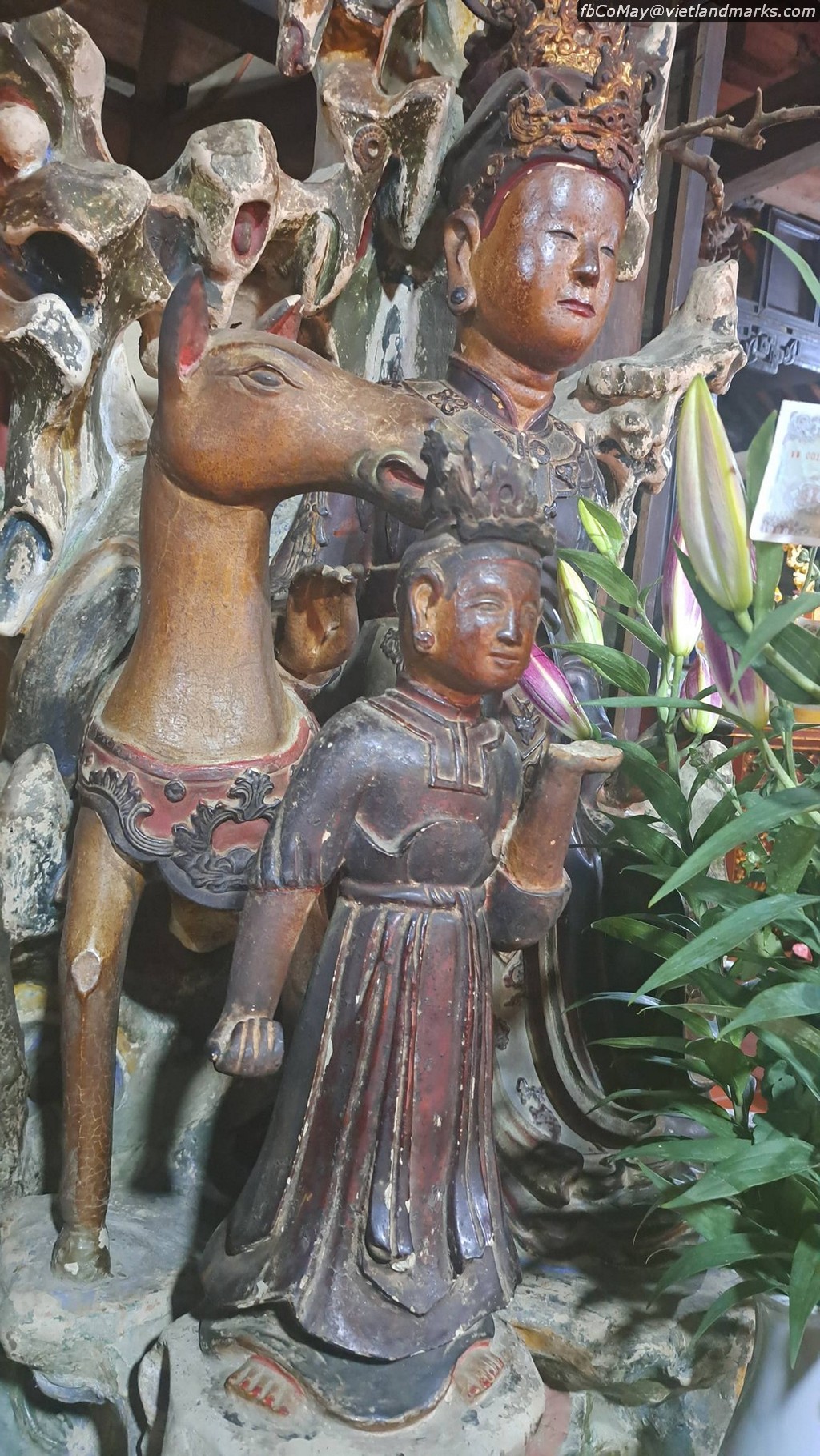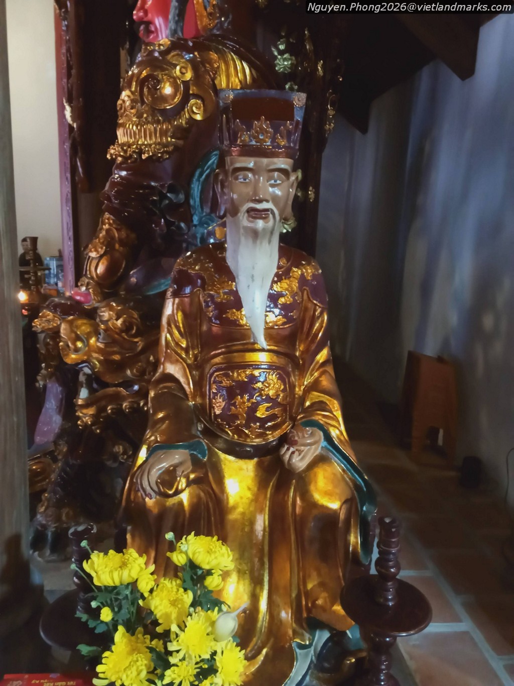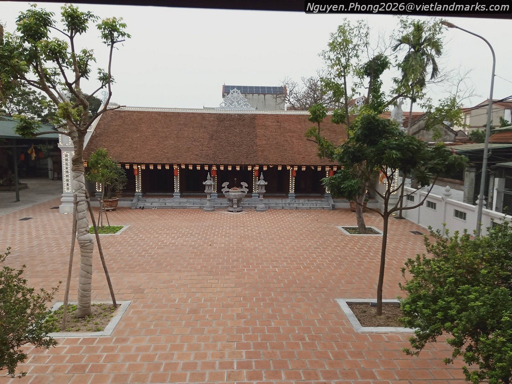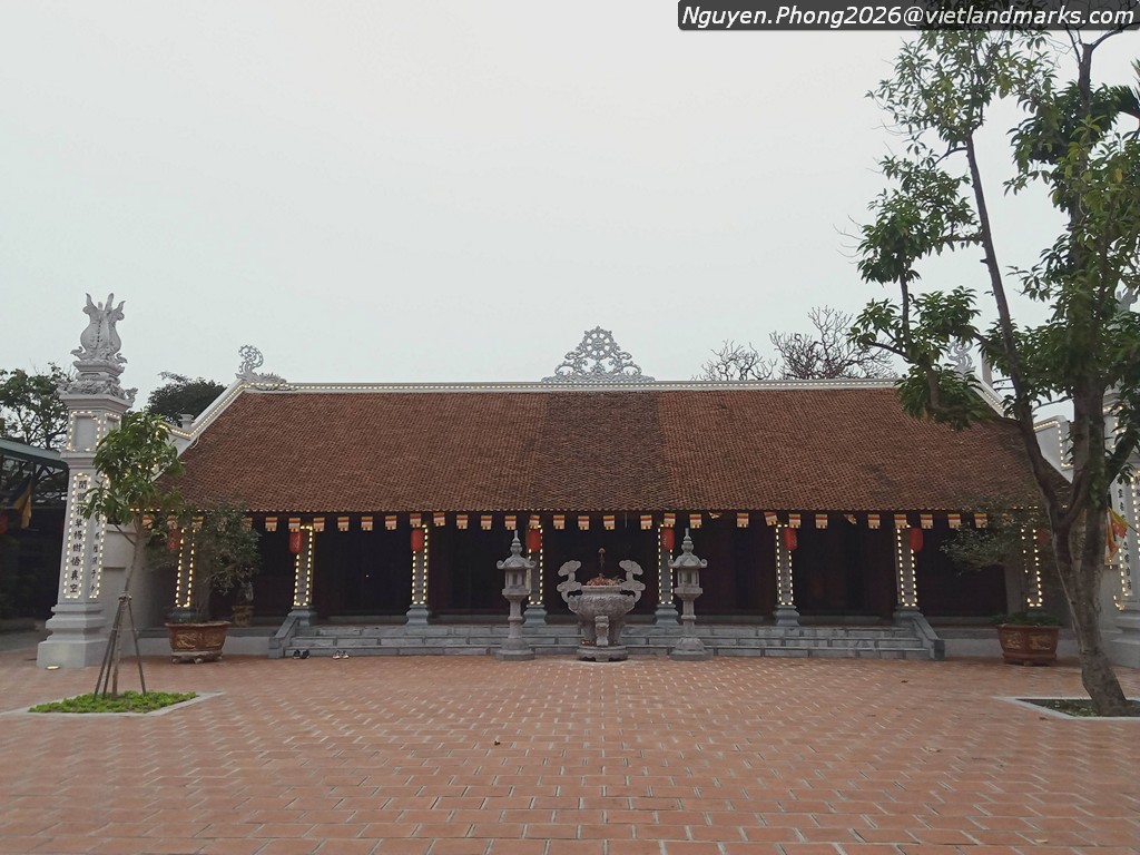 Tiền đường bài trí hệ thống tượng gồm Hộ pháp ngồi trên sư tử, Đức Ông và Thánh Hiền ngồi trên ngai, còn tượng Giám trai và Thổ địa đều là những pho được tạo tác đầu thế kỷ XX. Hồi bên trái có 2 tấm bia nhỏ, kê tên 20 vị đỗ đạt của địa phương.