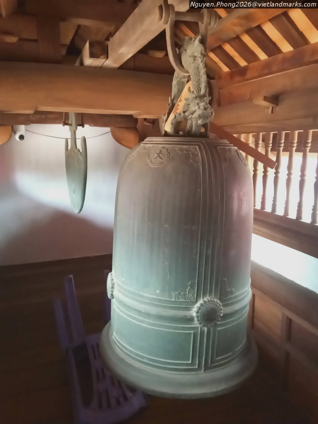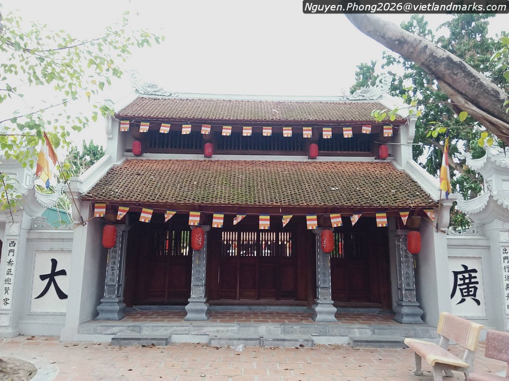 Tam quan kiêm gác chuông gồm 2 tầng 8 mái. Gian giữa treo quả chuông có tên Đại Bi tự cao 1,10m, đường kính 0,60m đúc năm Cảnh Thịnh thứ 6 (1798), gian bên trái treo khánh đồng cao 1,03m, rộng 1,34m. Trên khánh đúc nổi hai mặt chữ: Đại Bi tự khánh, Bính Tý niên khánh (1818). Khu Tam bảo xưa kia có mặt bằng hình chữ “đinh” nhưng khoảng năm 1950 đã tu sửa và nâng cao chừng 1m và làm thêm một nhà ngang phía sau thành kiểu chữ “công”.