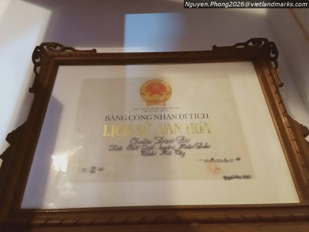 Chùa Đại Bi đã được Bộ Văn hoá và Thông tin xếp hạng di tích kiến trúc nghệ thuật năm 1996./.