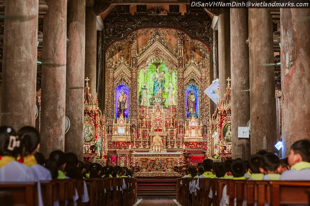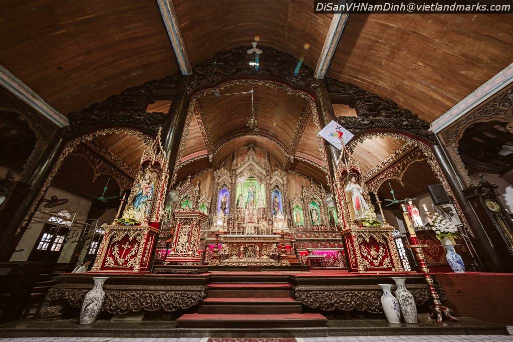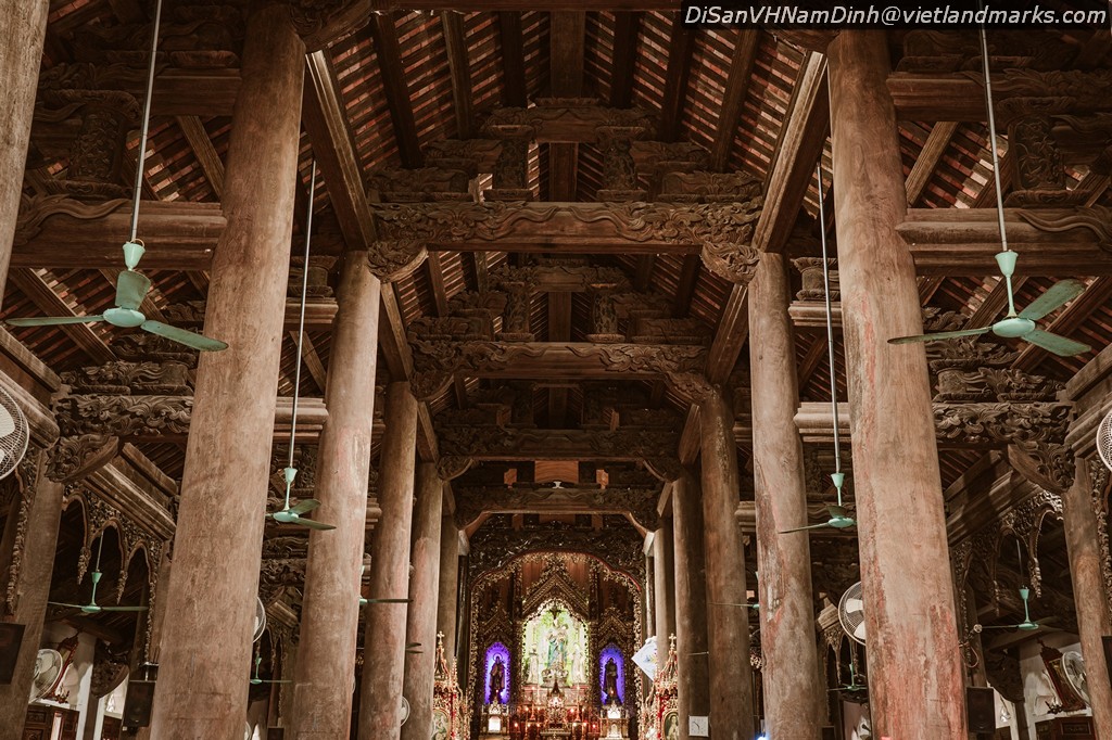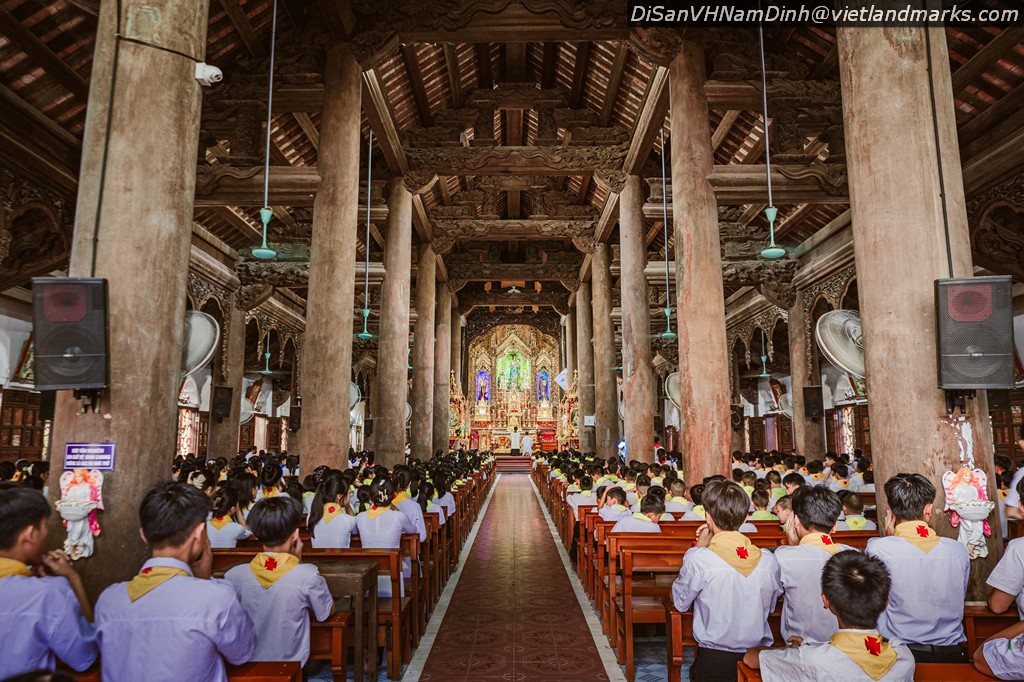 14m, lợp toàn ngói nam có 6 giáo họ: Nam Đường Thượng, Nam Đường