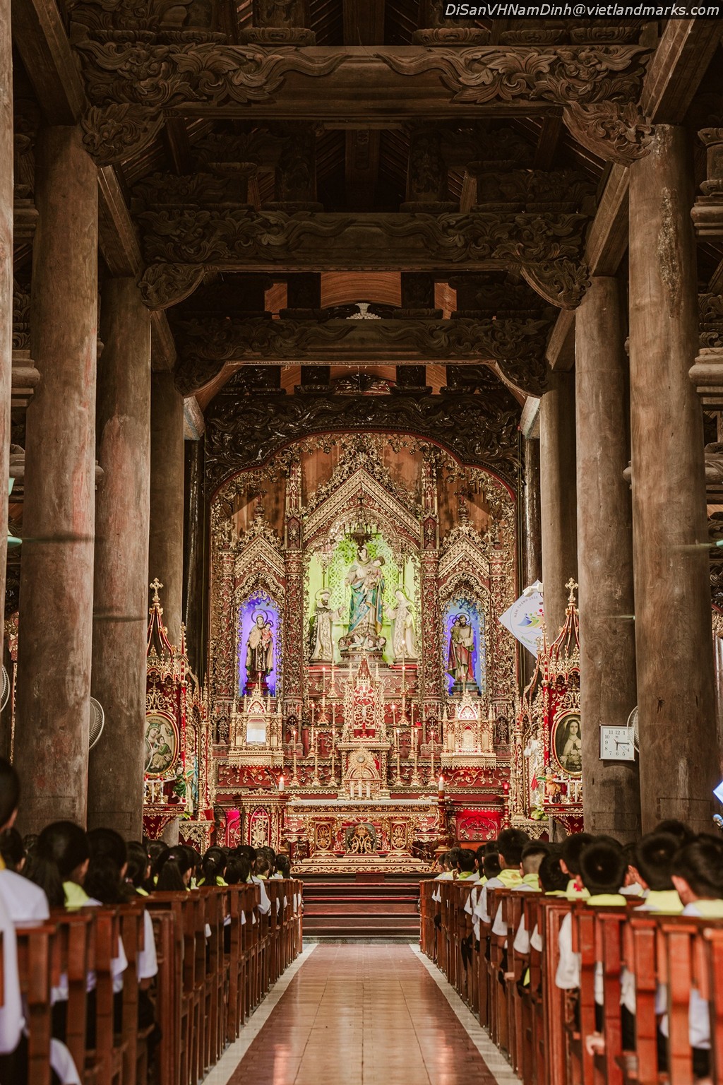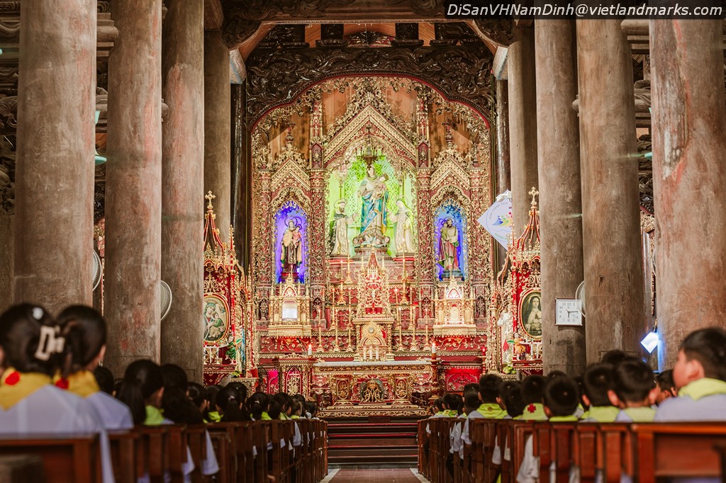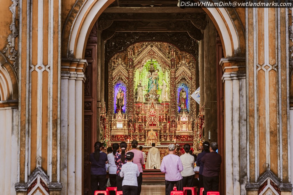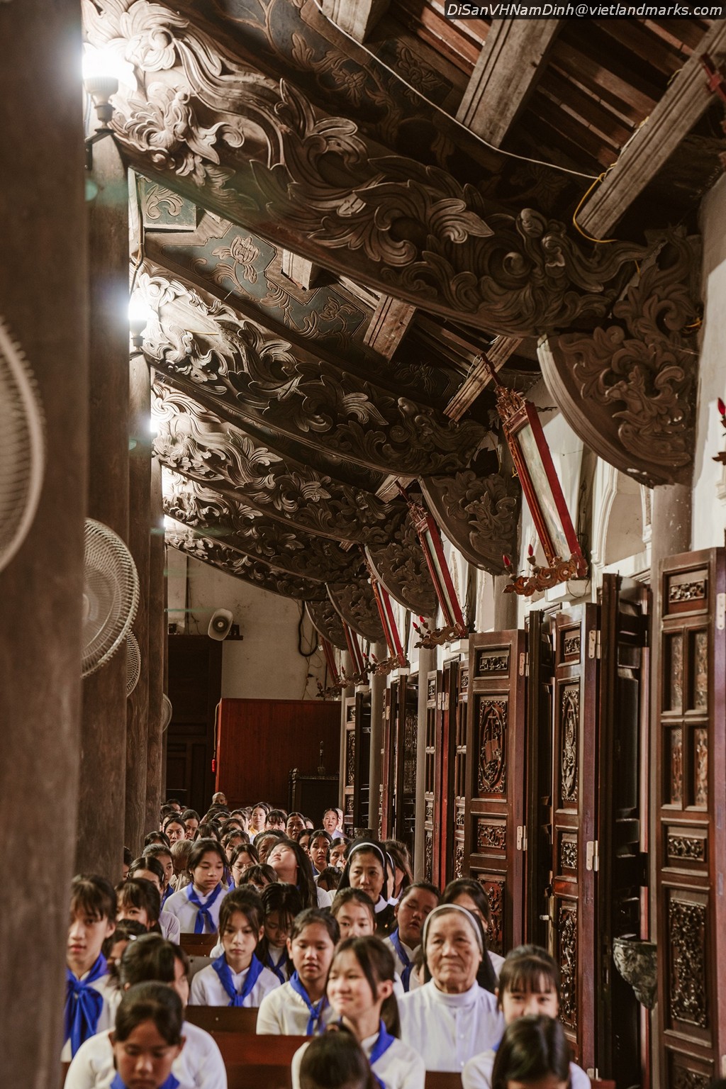 14m, lợp toàn ngói nam có 6 giáo họ: Nam Đường Thượng, Nam Đường