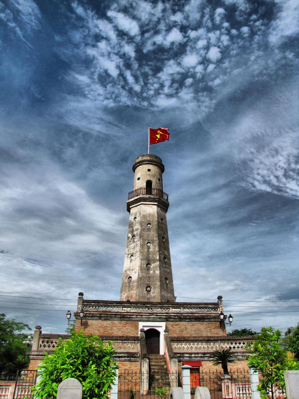 | Cột cờ đã bị hư hại do bom Mỹ nay đã trùng tu lại |