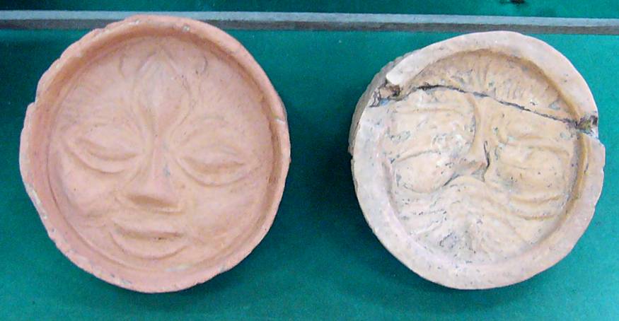 Những mảnh đầu ngói ống tìm thấy trong hố cắt bờ thành nam của thành Trà Kiệu
