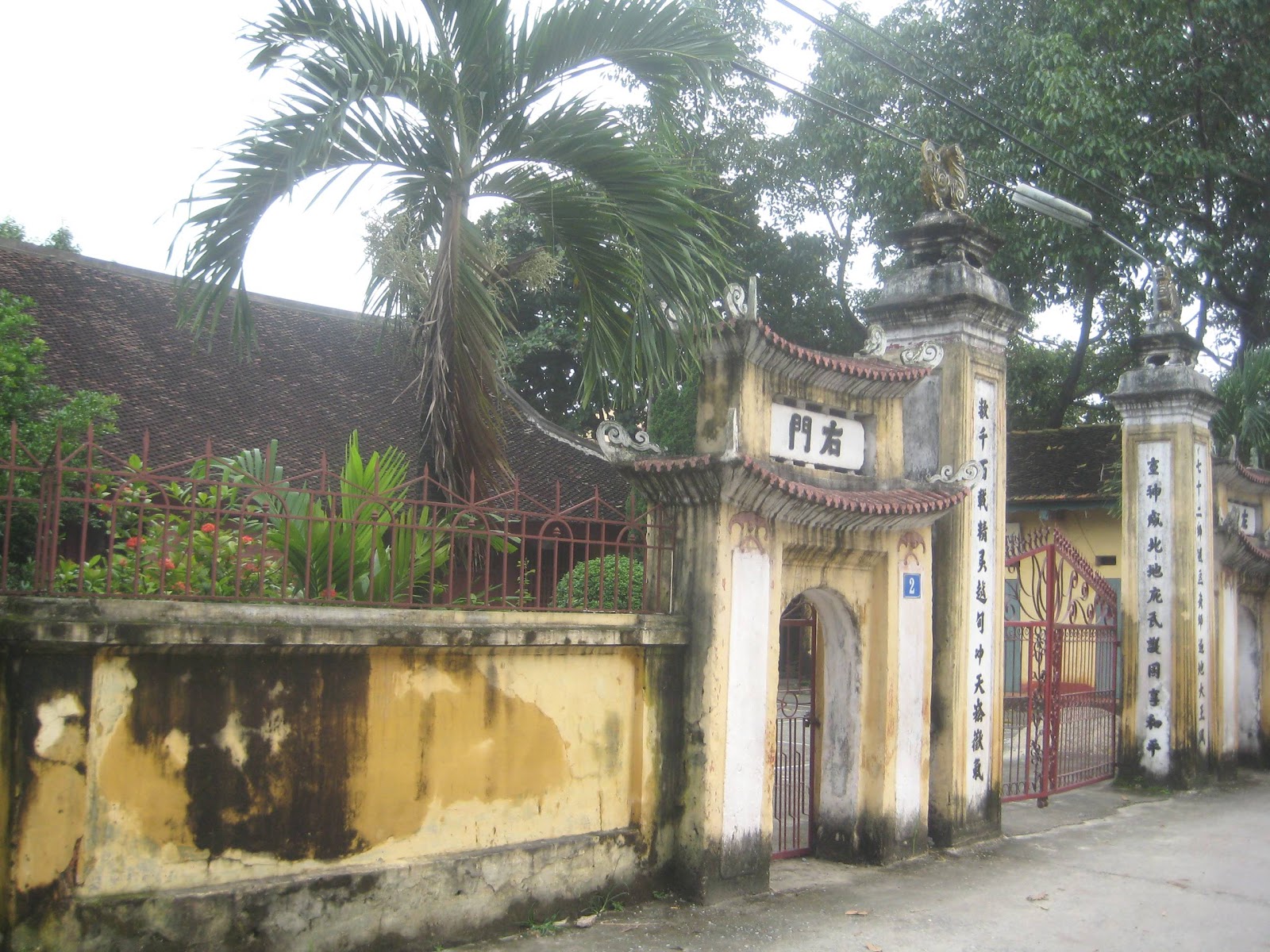 Nghi môn Đình- Phía trước đại Đình cách một khoảng sân rộng là Nghi môn Đình. Hạng mục công trình này thiết kế theo kiểu nghi môn trụ. Giữa là lối đi rộng hai ben hai cột trụ, trụ biểu. Cột trụ hình cắt vuông các thân mặt có gờ chỉ. Lòng thân trụ ghi các câu đối :