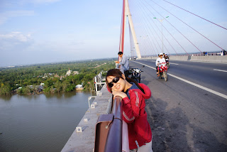 Vì quyết định tối ngủ Cần Thơ nên tiếp tục chạy thêm 30km nữa, đến cầu Cần Thơ, làm vài pose hình trên cây cầu là vào TP. (Hiện giờ chắc ít ai còn đi theo đường phà cũ nữa).