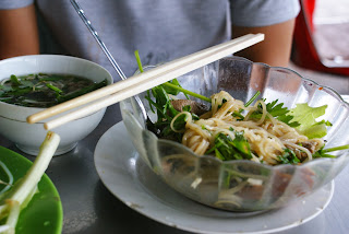 Công cuộc đi kiếm chỗ ăn ở Sa Đéc là đuối nhất. Search google ra 2 quán bán hủ tiếu ở Sa Đéc là Văn Vĩ đường Trần Phú và 1 quán không thèm ghi tên đường Nguyễn Sinh Sắc. Chạy 2 vòng Trần Phú không thấy cái quán nào tên Văn Vĩ hết, chả biết nó có mở cửa chưa, thấy duy nhất có 1 quán bán đồ ăn thôi, thế là tấp vô luôn. Quán không bảng, không tên, thì ra bán bún riêu. Mà bún riêu SD thì khong khác gì hủ tiếu: có sườn, giò, chả,... nước lèo thì vẫn nấu theo kiểu bún riêu. Đói quá rồi nên làm đại luôn, nói chung ăn cũng ngon, lạ lạ miệng.
