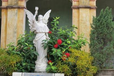 Hôm nay Cha xứ đi vắng, có ủy cho các ông Chánh và Phó trương cùng ban hành giáo đón tiếp và hướng dẫn chúng tôi tham quan nhà thờ.