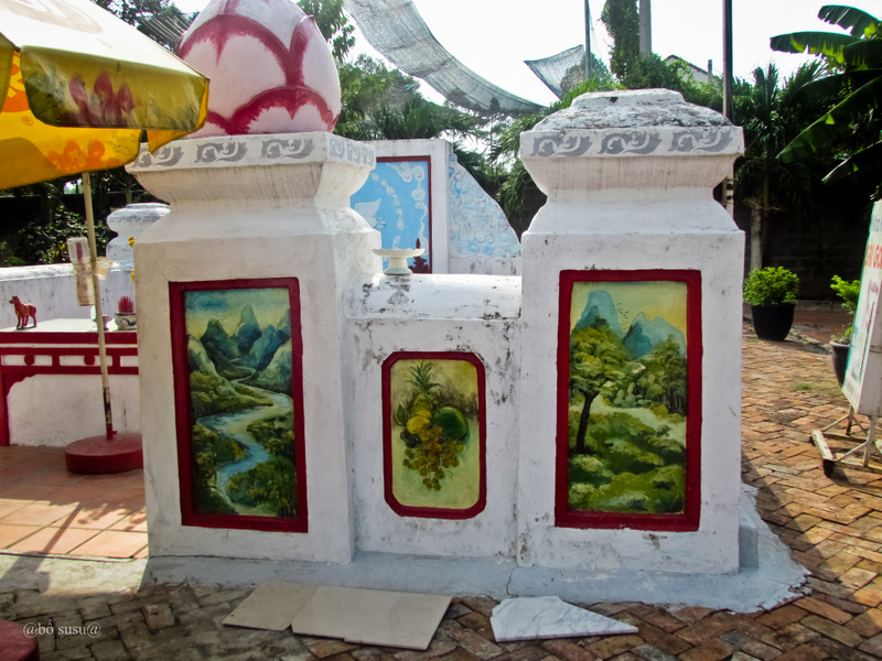 Những hàng binh đoa, chim hạc trong khu thờ,