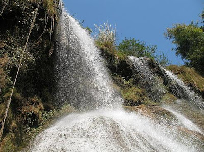 Từ nguồn nước trong núi đùn lên, tạo thành suối Vặt và chảy về đến thác nước, nơi du khách sắp xuống thăm quan có độ dài gần 5 km, lượng nước của suối có quanh năm, khi chảy đến đây dòng chảy bị chặn lại bởi một bức tường đá vôi, nước tràn ứ lên, chảy ngược lại, lượng nước ở đây cứ dâng lên và tràn về phía bờ thấp hơn và đổ xuống phía dưới và tạo thành thác nước và hòa vào dòng chảy của suối Bó Sập một dòng suối lớn bắt nguồn từ Bản Bó Sập giáp biên giới Việt Lào chảy về đất Yên Châu.