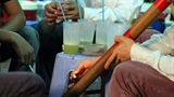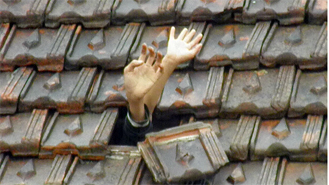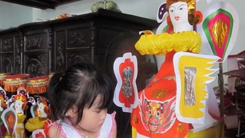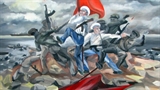 Lớp thứ ba là cảnh hội làng ở thời điểm thăng hoa: Một cụ già, tay cầm gậy, dáng lom khom, khớp khởi bước ra như nhân vật “lão say” trong trích từ chèo cổ. Một cô gái, áo dài tha thướt, hai tay xòe quạt ngang ngực, miệng nở nụ cười hay tiếng hát cất lên. Tiếp đến một chàng trai khỏe mạnh, một chân đá phắt quả cầu, cánh tay vung thẳng về phía trước, ngang lưng khăn quấn gọn gàng, quần xắn lửng, khoe đôi chân chắc mập.