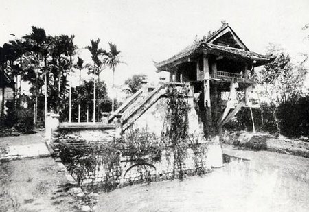 Chùa được xây dựng vào năm 1049 thời vua Lý Thái Tông trong viên lâm phía tây cấm thành, theo cách dựng chùa trên kinh chàng (Nhất trụ tự) ở kinh đô Hoa Lư . Năm 1106 niên hiệu Long Phù Nguyên Hóa đời vua Lý Nhân tông, chùa được trùng tu lớn. Sau khi trùng tu chùa trở thành một quần thể kiến trúc với trung tâm là một hồ vuông gọi là hồ Linh Chiểu thả sen, giữa hồ nổi lên một cột đá lớn, trên đỉnh cột là đóa sen vàng ngàn cánh nở rộ. Giữa đóa sen là tòa điện nhỏ màu tía, Trong điện đặt tượng phật mạ vàng. Vây quanh hồ sen là hành lang chạm vẽ, vòng ngoài hành lang là hào nước xanh biếc, mỗi mặt đều bắc cầu vồng để đi thông vào, ở mỗi sân phía trước hai bên cầu đều dựng hai ngọn tháp lợp ngói lưu ly.