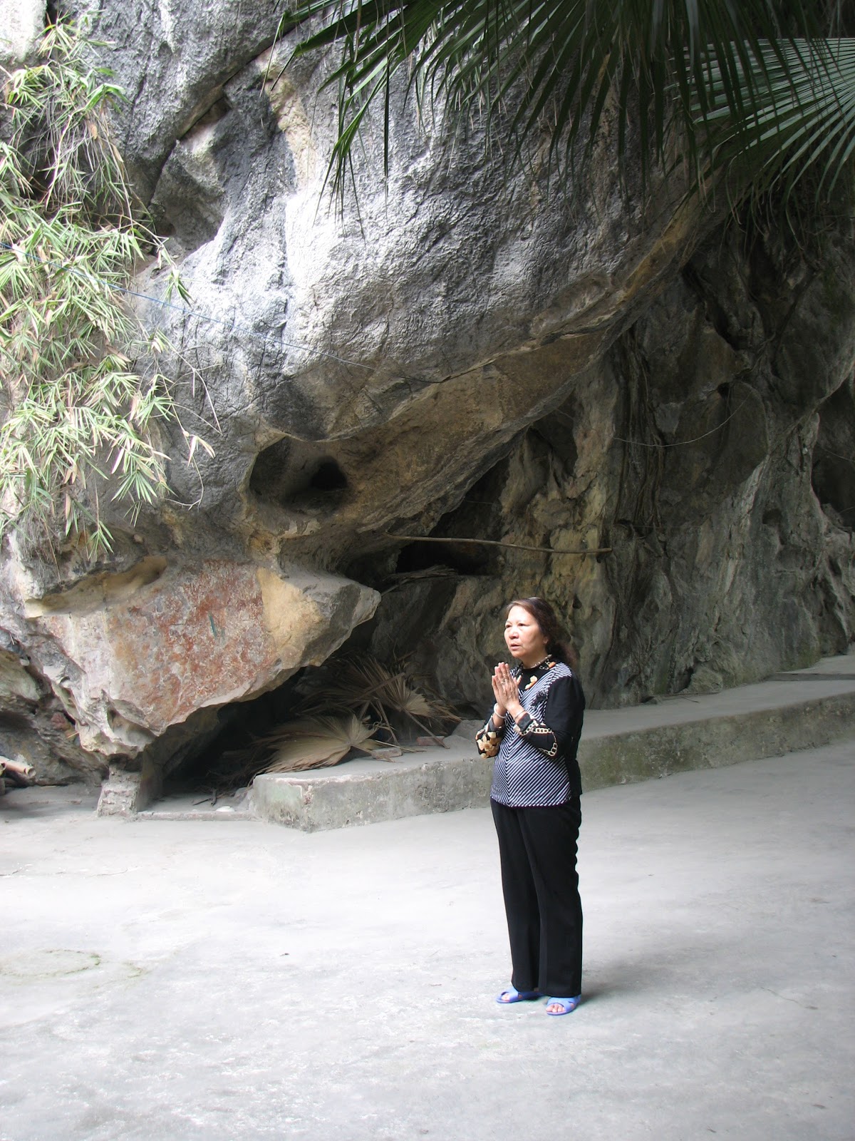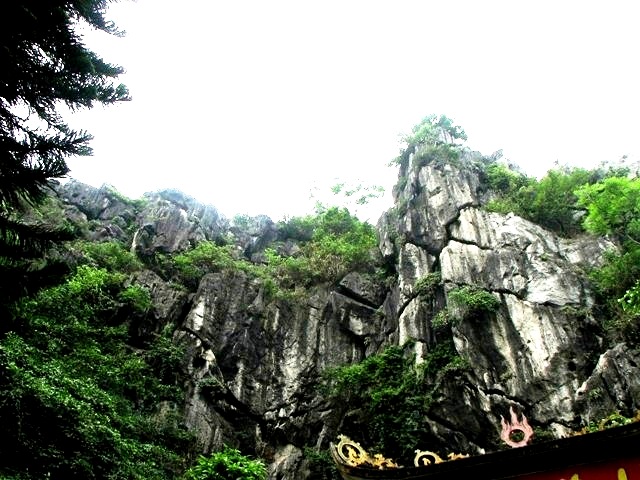 | Bia đá Khánh Đức Nham Sơn sau cổng chùa, vào động |