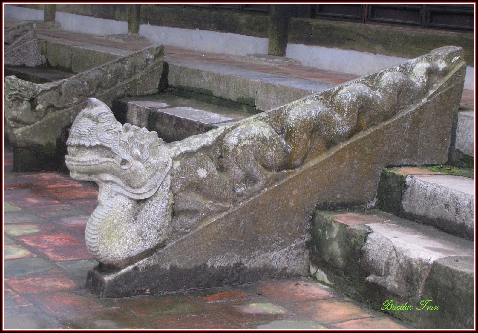 Đặc biệt cánh cửa lim của chùa có chạm nổi họa tiết rồng cuốn thành hình hoa sen, qua đây có thể thấy vai trò của đạo Phật đối với các vương triều họ Lý và Trần. Nói lên một triết lý của ngôi chùa hoàng gia này là: "Qua cửa rồng ( vua ) vào cửa Pháp ( Phật pháp))". Bức tượng Phật hoàng Trần Nhân tông nằm thiền cũng khá đặc biệt: Phật hoàng nằm nghiêng bên trái, hình sư tử, chống tay trái, trông về hướng Nam.