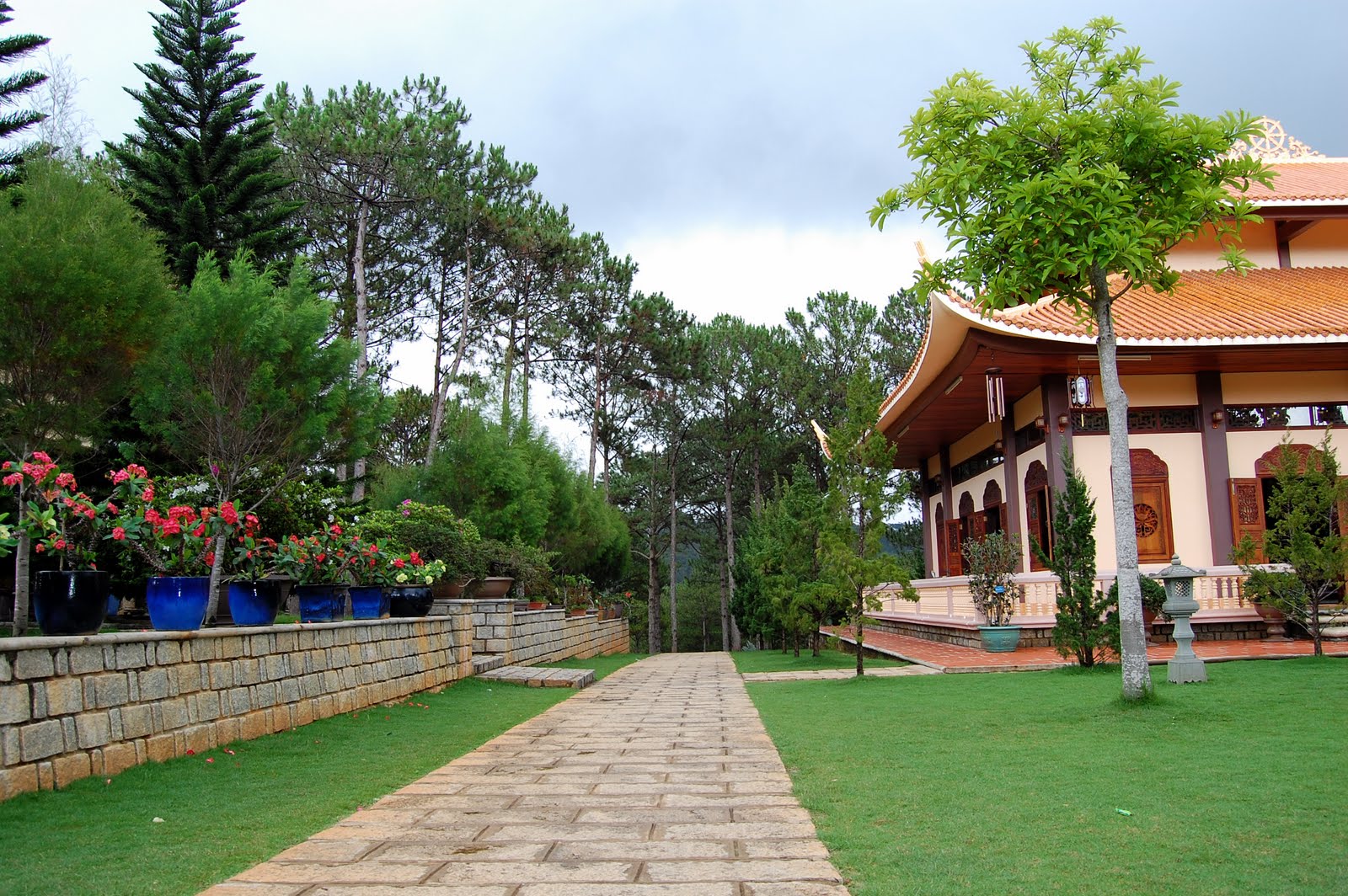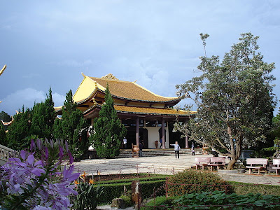 | Chính điện thiền viện nhìn từ vườn hoa |