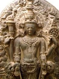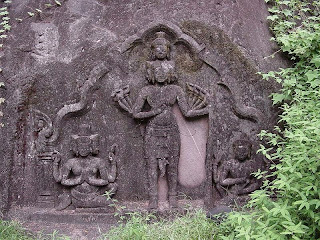 nguyện đứng trong các vòm cuốn nhỏ, mặt quái vật (Kali), thủy quái (Makara) hay