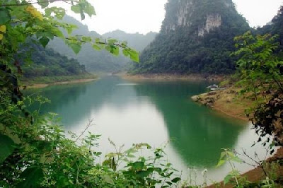 Ngày chúng tôi đến, vạt hoa dại ven hồ đang nở đầy những bông hoa nhỏ, tím ngắt. Thảm hoa tím ôm trọn lấy mặt nước hồ xanh màu ngọc bích mát lành giữa trưa nắng. Những tia nắng vàng nhảy nhót lấp lánh trên mặt hồ xanh phẳng lặng như gương. Xa xa, sau thảm hoa là tán rừng già xen lẫn những mỏm đá tai mèo, khiến mặt hồ như thu nhỏ lại, e ấp nép mình dưới sự chở che của núi rừng.