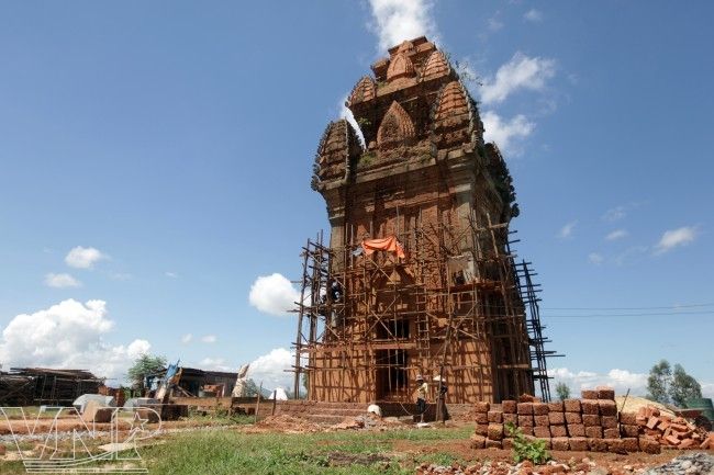 < Cụm tháp Dương Long đang trong giai đoạn trùng tu.