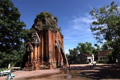 < Tháp Bình Lâm ở thôn Bình Lâm, xã Phước Hoà, huyện Tuy Phước, tỉnh Bình Định hiện là ngôi tháp Chăm duy nhất nằm giữa khu dân cư.